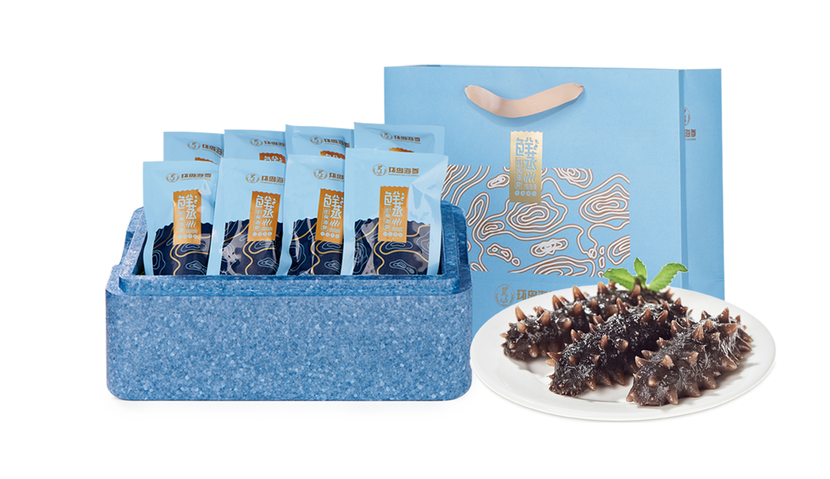 環(huán)島干海參禮盒| 大連長(cháng)海鮮活傳統工藝加工,清洗去臟,大火熬煮,低溫干燥。海參形體飽滿(mǎn),水發(fā)率高,色澤口感佳,便于長(cháng)期儲存。